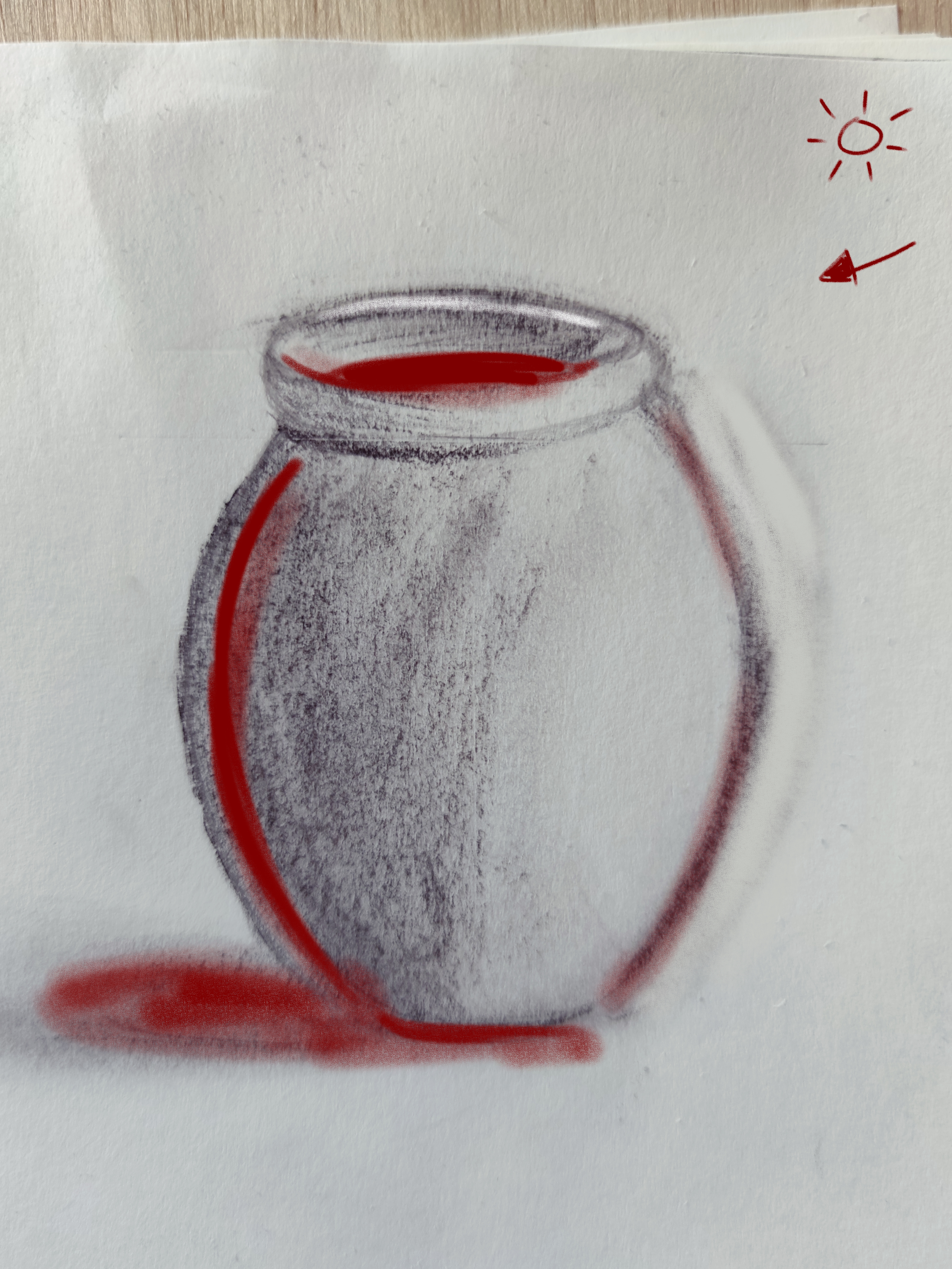 Bonjour CHANG, joli rendu sur ce pot de terre! Mais attention de bien identifier ta source de lumière pour éviter d'avoir des ombres portées dans tous les sens. N'hésite pas à accentuer le terminator également. Si tu utilises une photo de référence, privilégie des modèles avec des sources lumineuses simples, et éviter les éclairages multiples dans un premier temps. En tout cas, beau boulot!