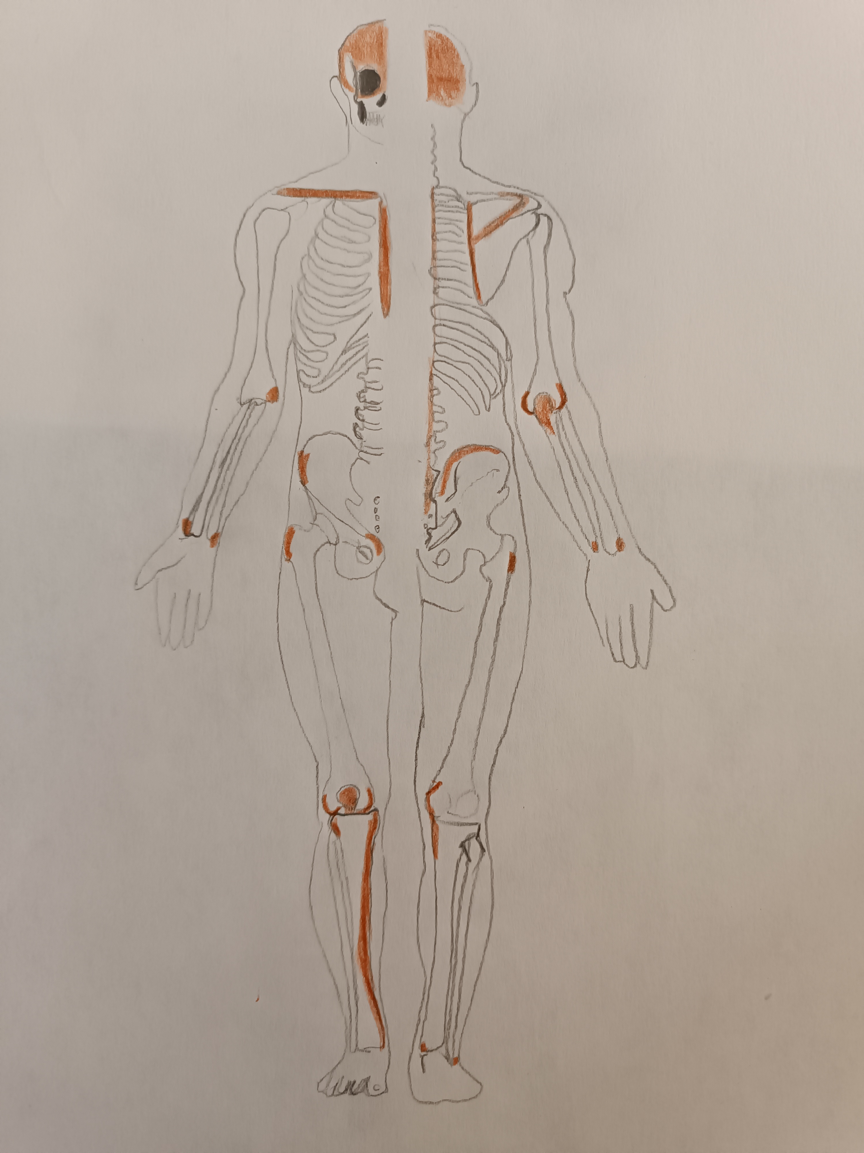Beau travail ! L'emplacement et la structure générale des os sont clairs, et les touches d'orange sont très agréables à l'œil.