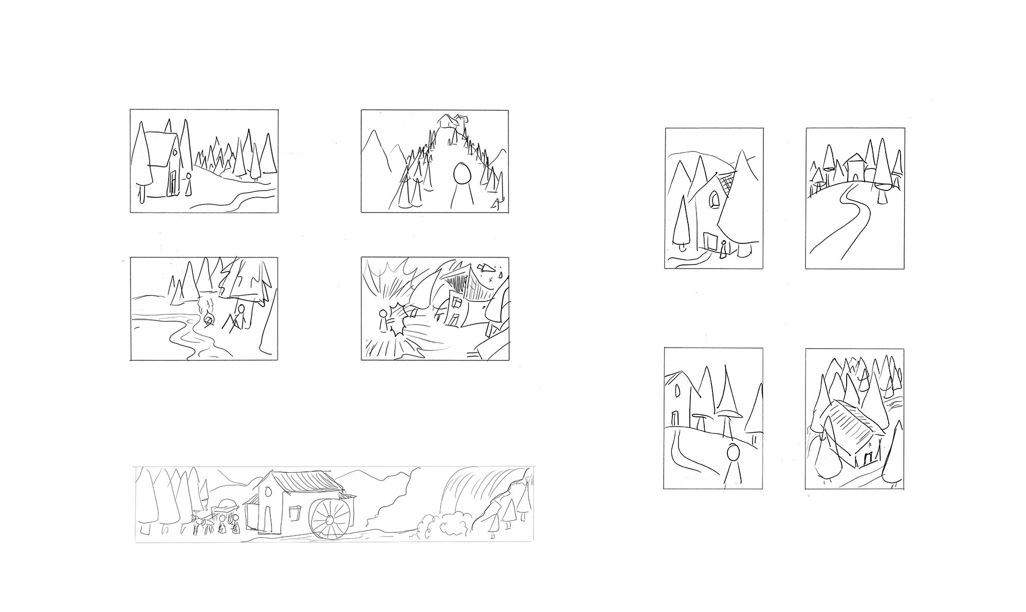 Bonjour Isaiah, elle sont vraiment pas mal ces pochades! Tu peux ajuster encore un certaines proportion, comme la taille de la maison sur la première que tu peux faire plus petite (ça renforce la sensation de profondeur) diminuer la tailles des cascades qui ont tendance à être peu trop grande par rapport au reste... Attention aux éléments qui manquent de précisions (on ne voit pas certains troncs d'arbres par exemple). Autrement, c'est du bon travail! ^^