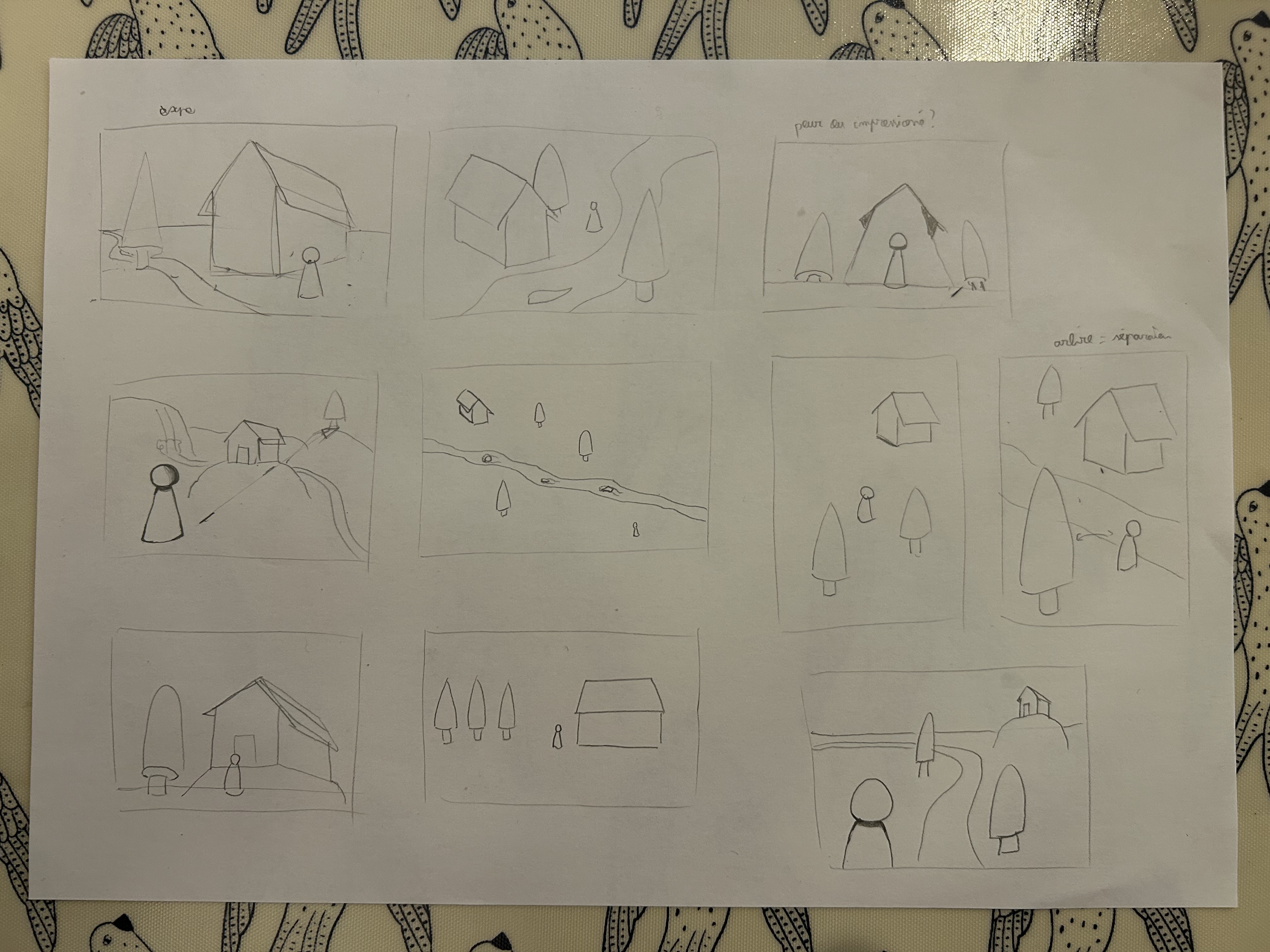 Voila mes compositions. J'aurais voulu mettre plus de maisons mais impossibles de comprendre comment les mettre et les dessiner, mon cerveau arrive pas à comprendre le truc pour l'instant 🤯