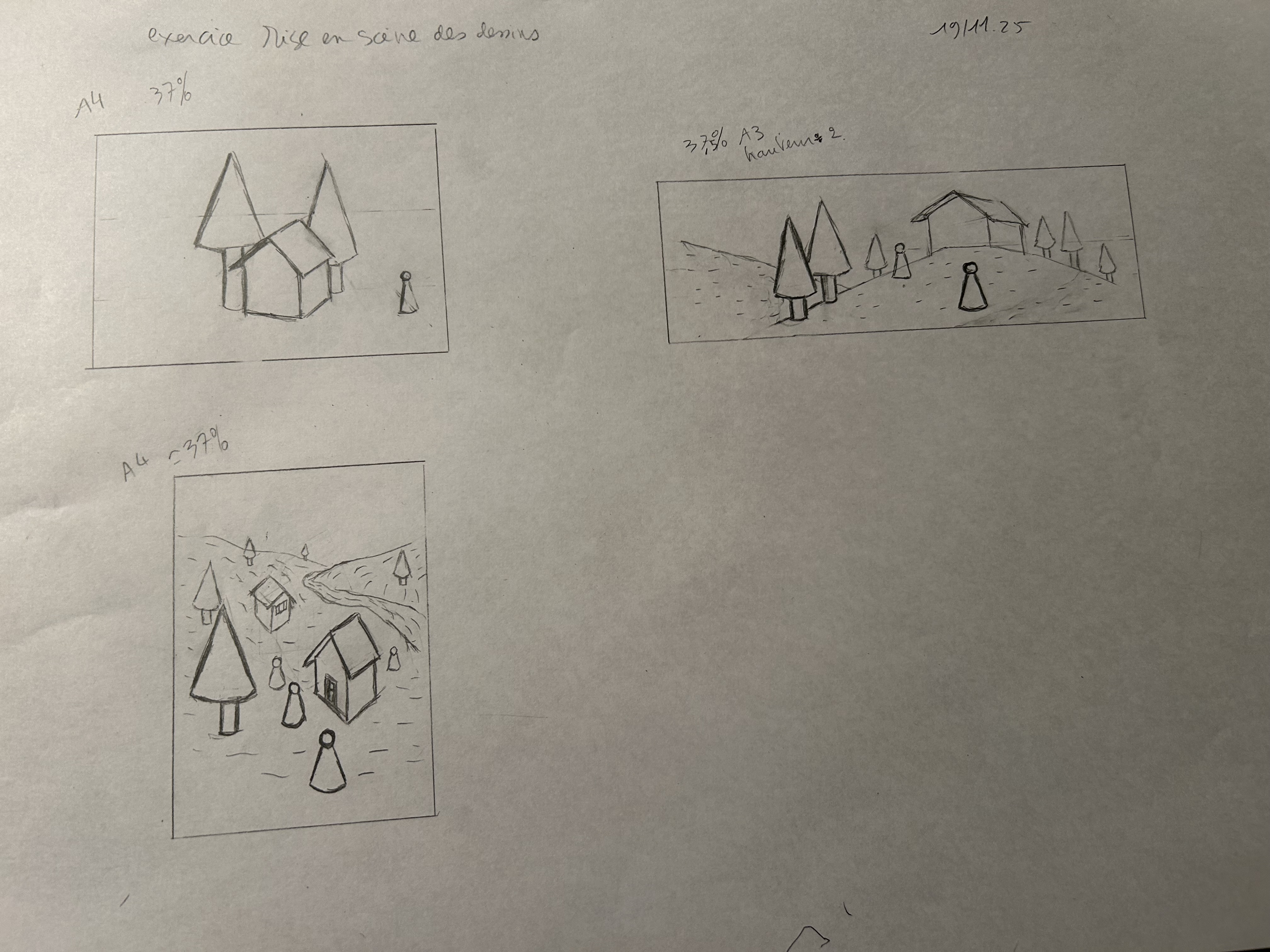 Tes compositions sont très bien réussies. Chacune est unique et cherche à explorer des points de vue très différents de la scène. Excellent travail !
