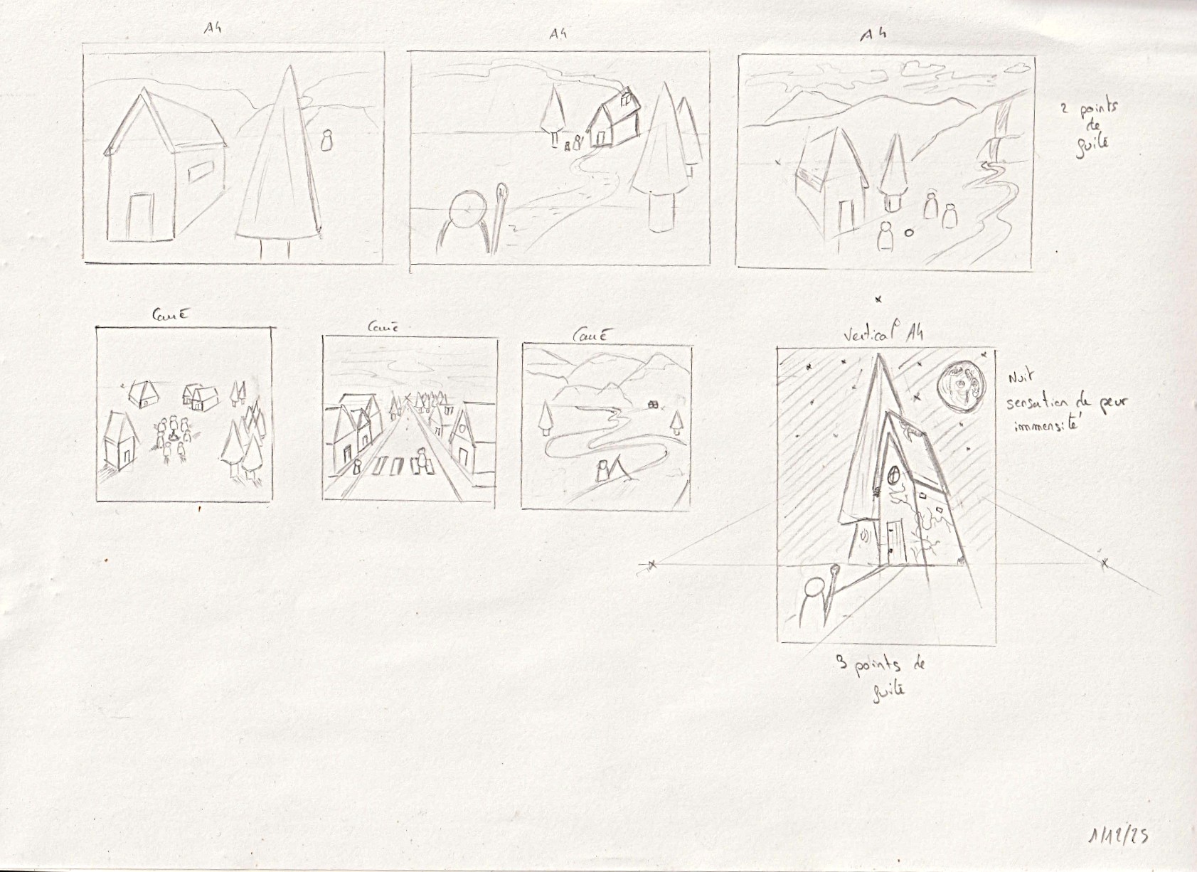 Voici mes quelques compositions, j'ai beaucoup aimé cet exercice ! c'est venu un peu tout seul et j'ai même tenté plusieurs points de fuites ;) En espérant que cela convienne