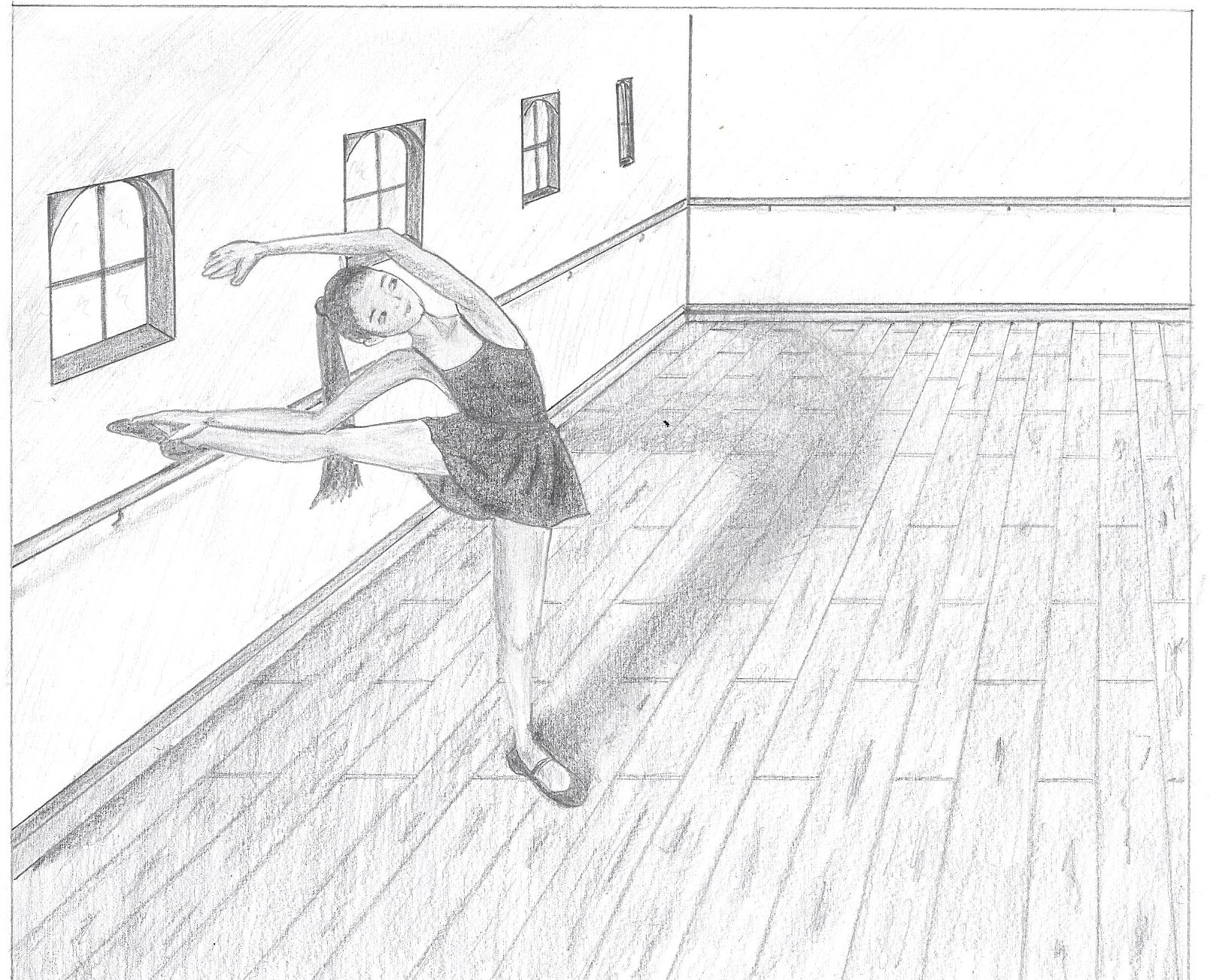 Je te recommande d'utiliser une estompe ou un autre matériel comme du coton pour estomper les ombres sur la peau de la jeune fille. En revanche, je te conseille de laisser les ombres du sol telles quelles : tu as généré la texture idéale pour le bois.
