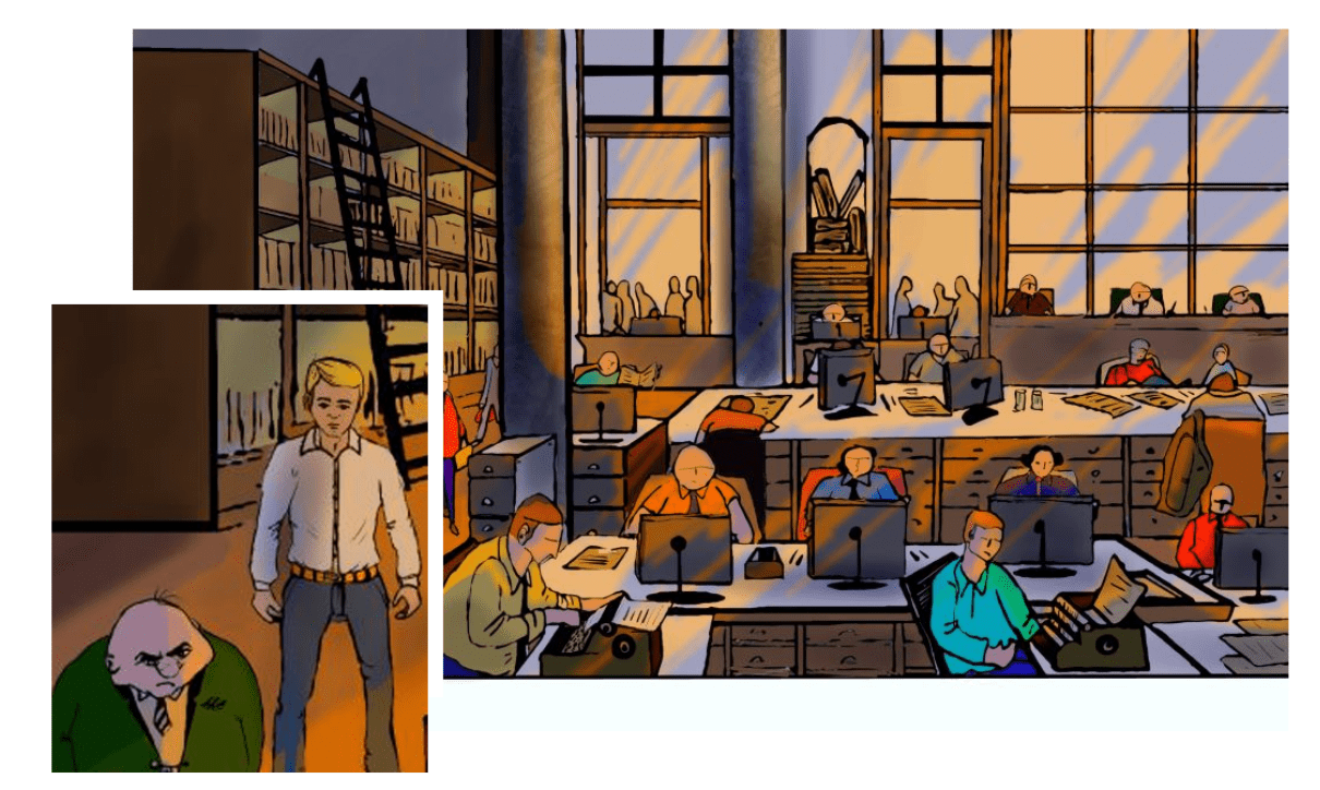 Bonjour , voilà j'avance un peu ...j'aurais d'autres scénes avant la confrontation jeune journaliste et patron grincheux .
