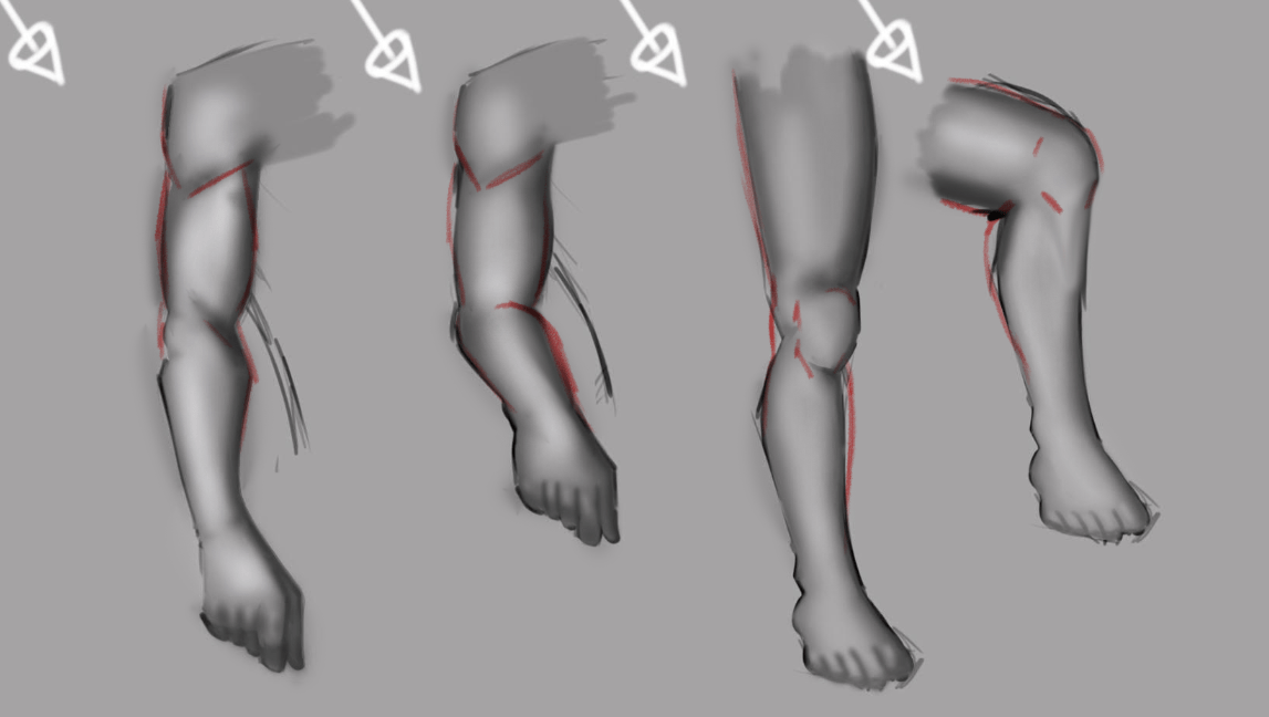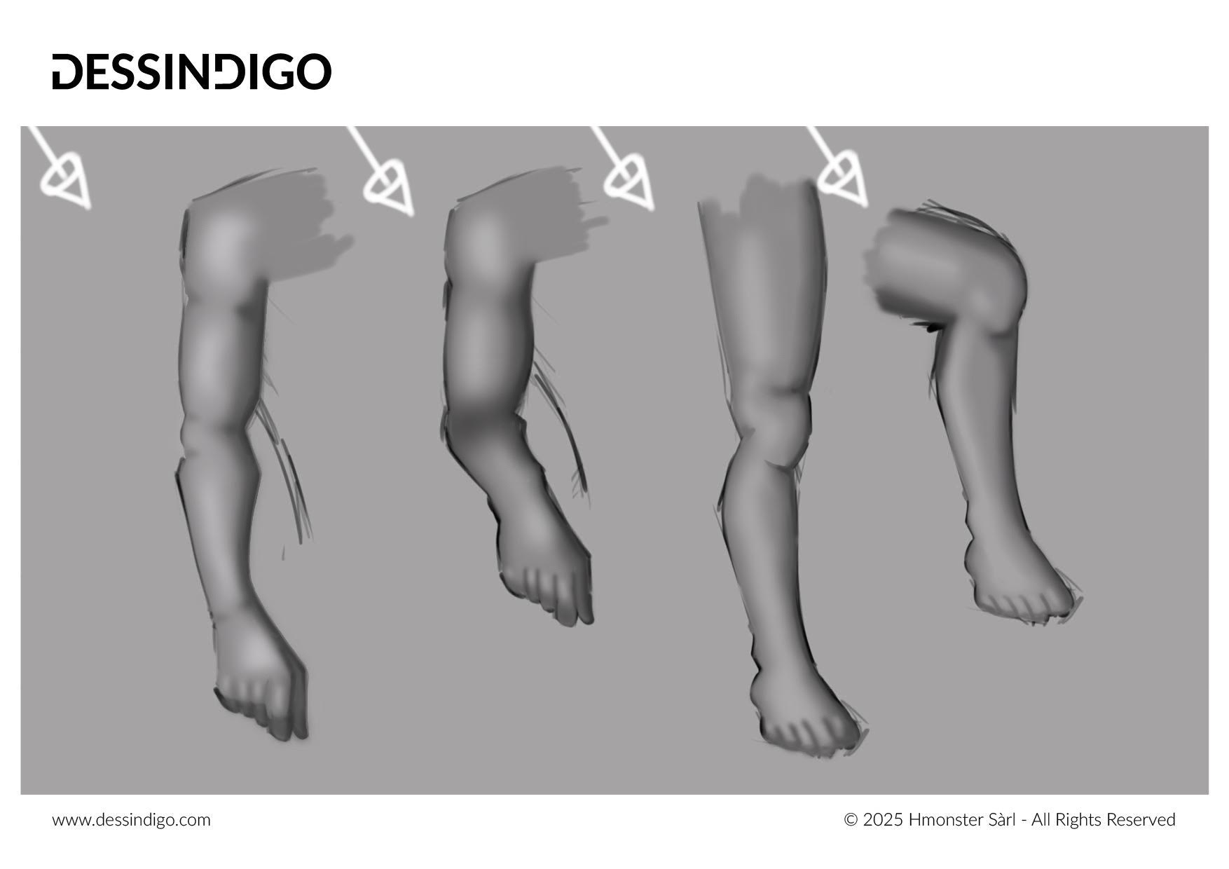 Concernant tes études de volume des membres, je te partage ces ajustements pour que tu puisses les observer et les comparer avec ton travail original. Rappelle-toi de toujours travailler à partir d'un modèle.
