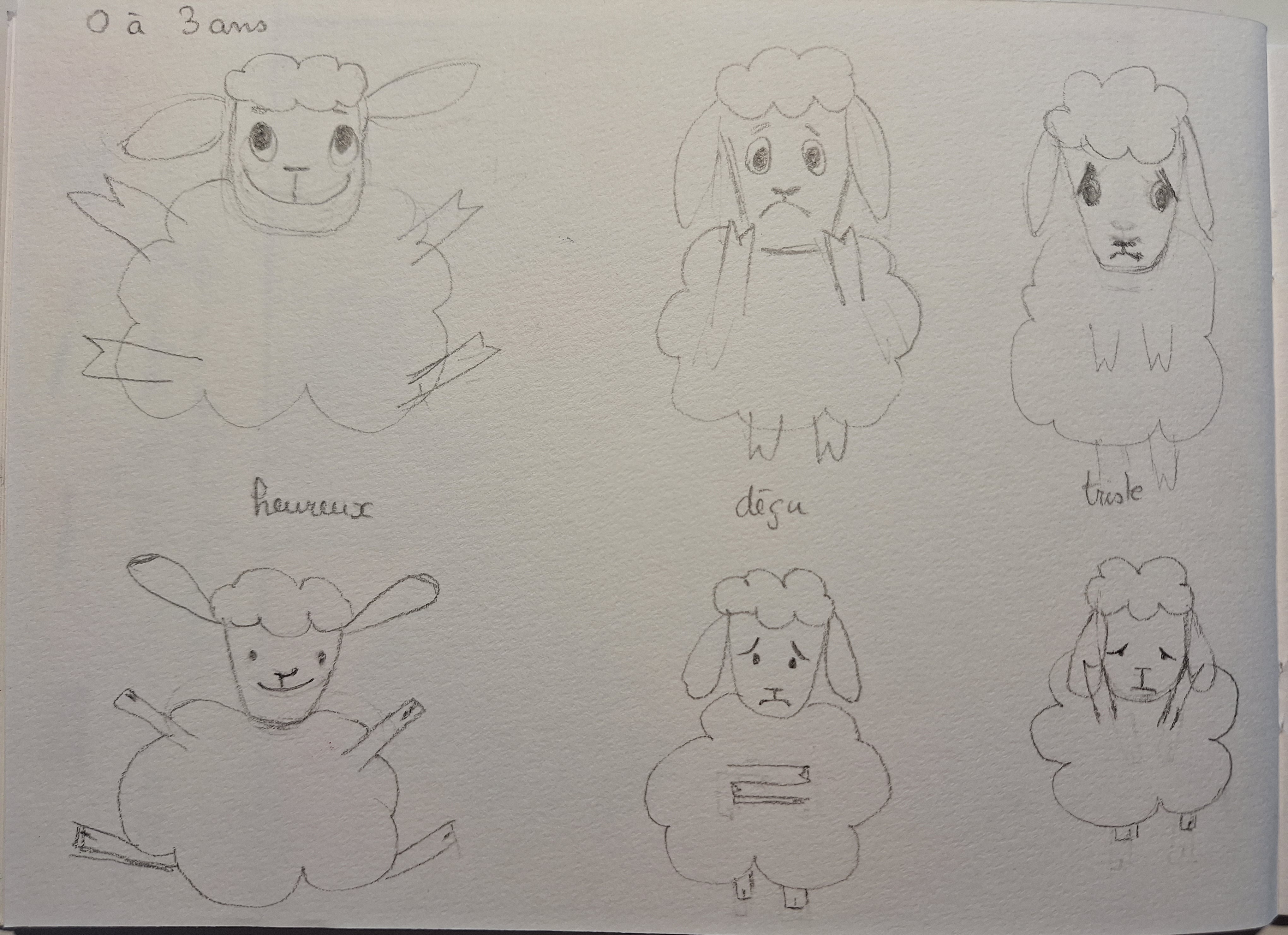 Pour répondre à tes questions, je pense que le choix dépend principalement du style que tu souhaites adopter, en cherchant toujours une apparence plus tendre pour les personnages d'enfants. Tes moutons sont vraiment charmants, et je trouve très judicieux que tu aies choisi d'essayer deux styles différents, car ils sont tout aussi valables l'un que l'autre.