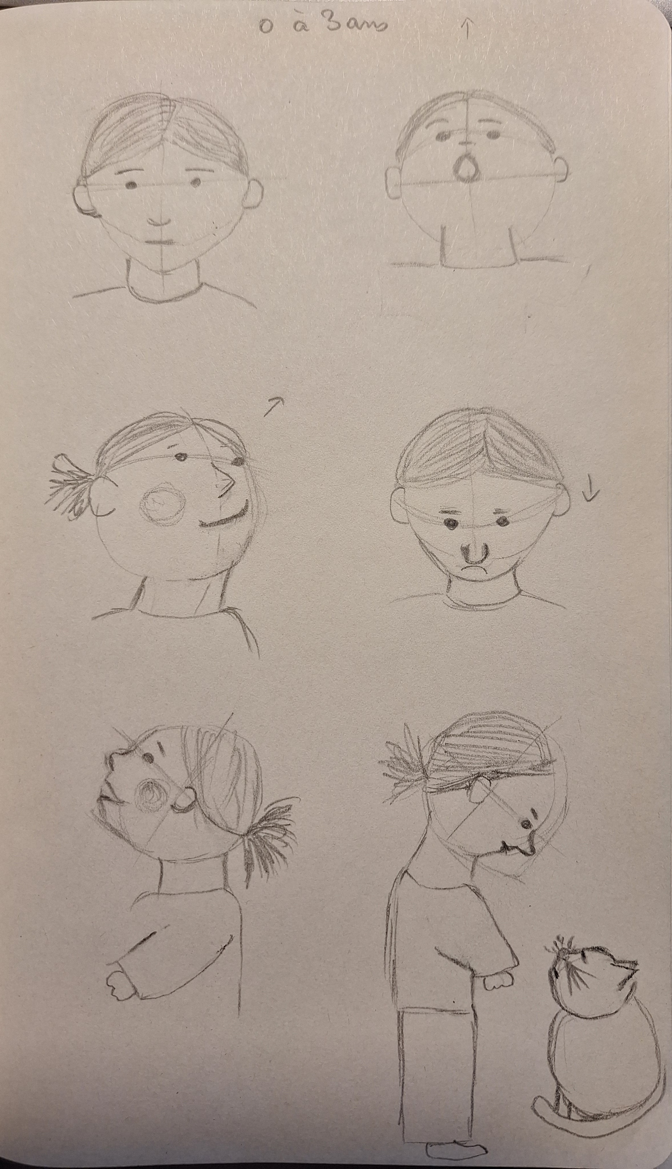 Si je regarde tous les exercices que j'ai fait jusqu'ici, je crois que je peux dessiner pour les enfants de tous âges. Je vais maintenant travailler sur ce qui touche mon roman pour jeunes de 12 ans.