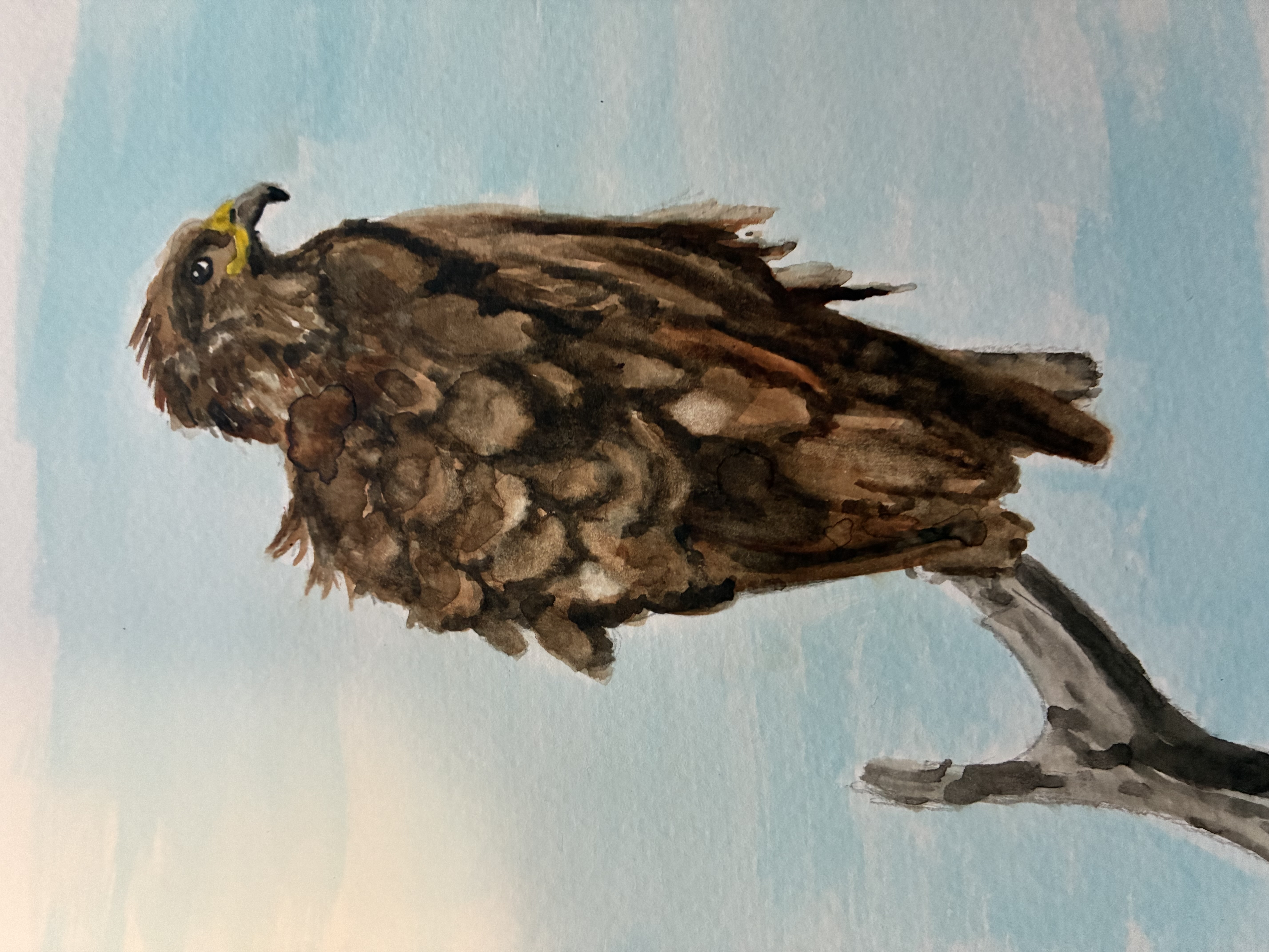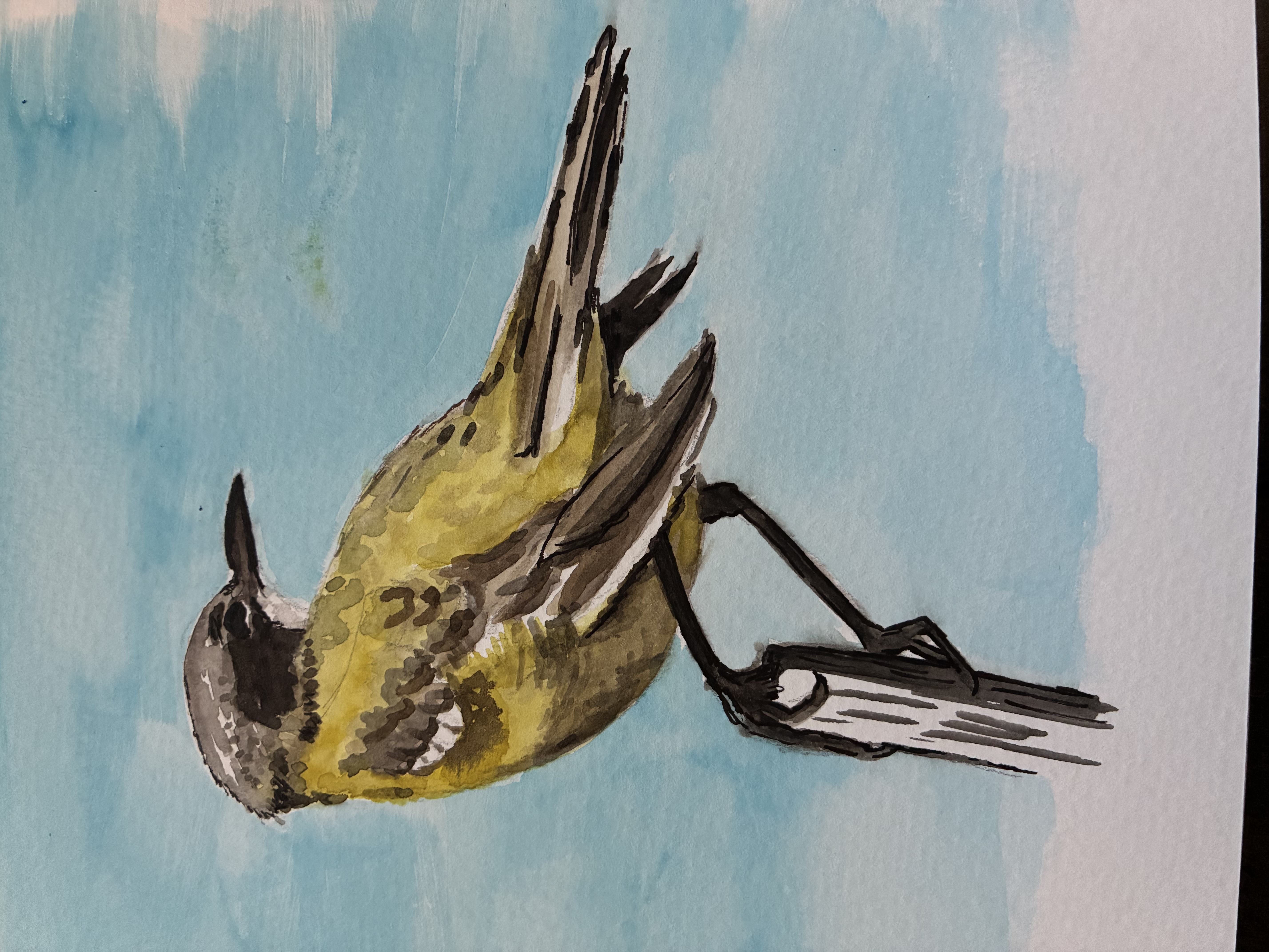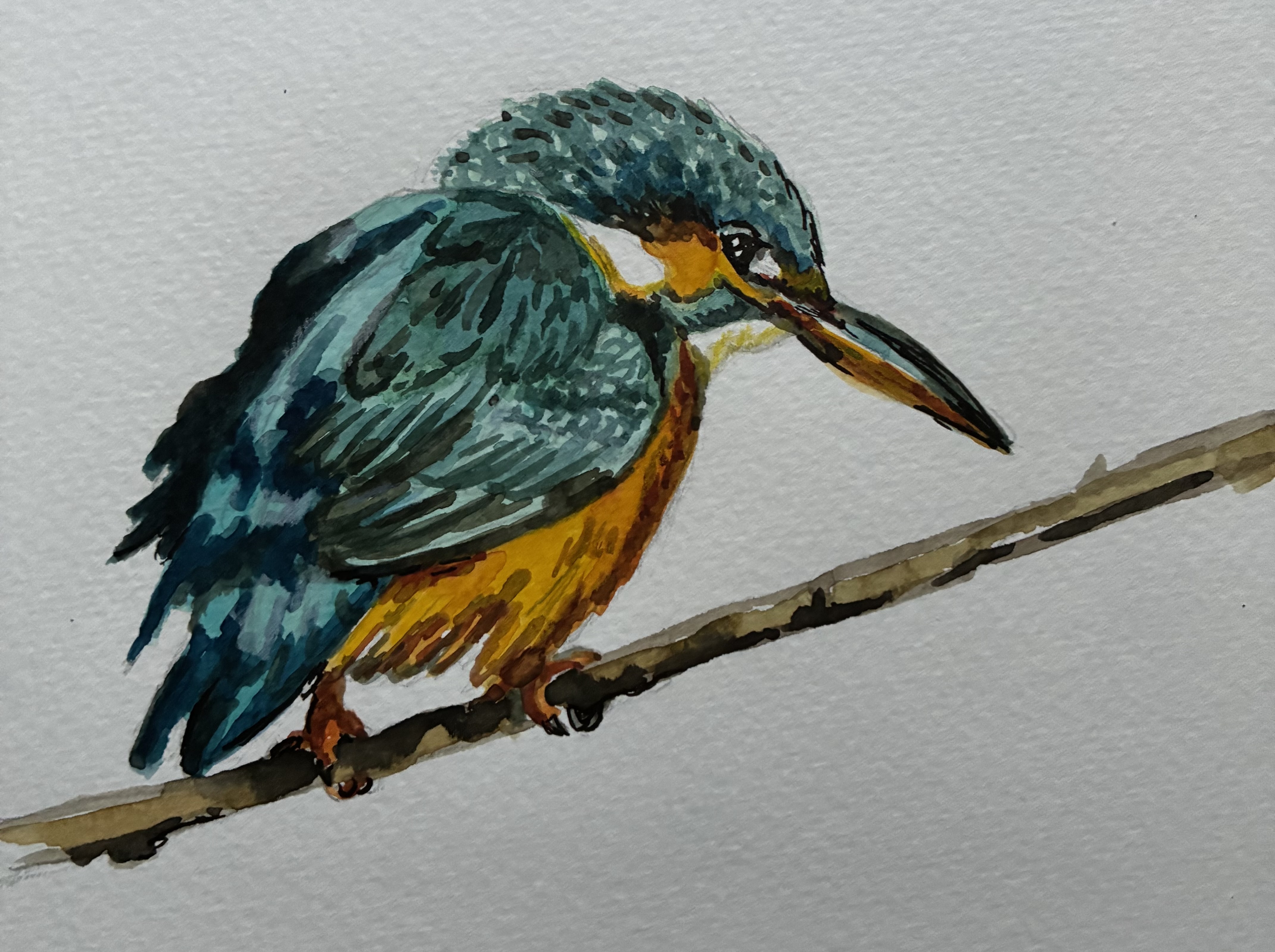 Ton oiseau possède les tons corrects et des traits suffisants pour une représentation fidèle. Comme suggestion, je peux te dire qu'il est bon de prendre quelques secondes entre deux coups de pinceau pour laisser sécher un peu la peinture ; ainsi, tu pourras obtenir des traits plus définis.