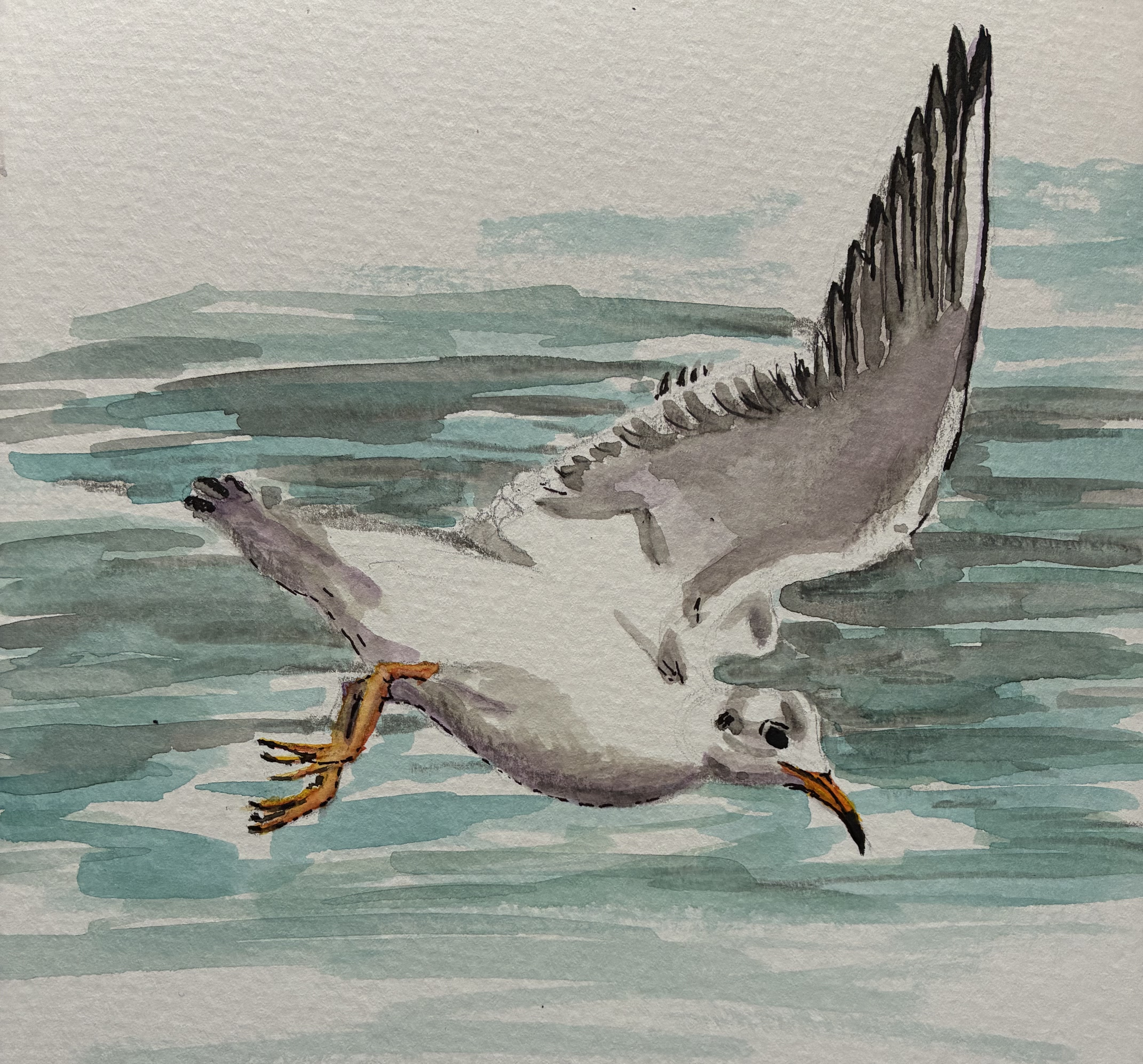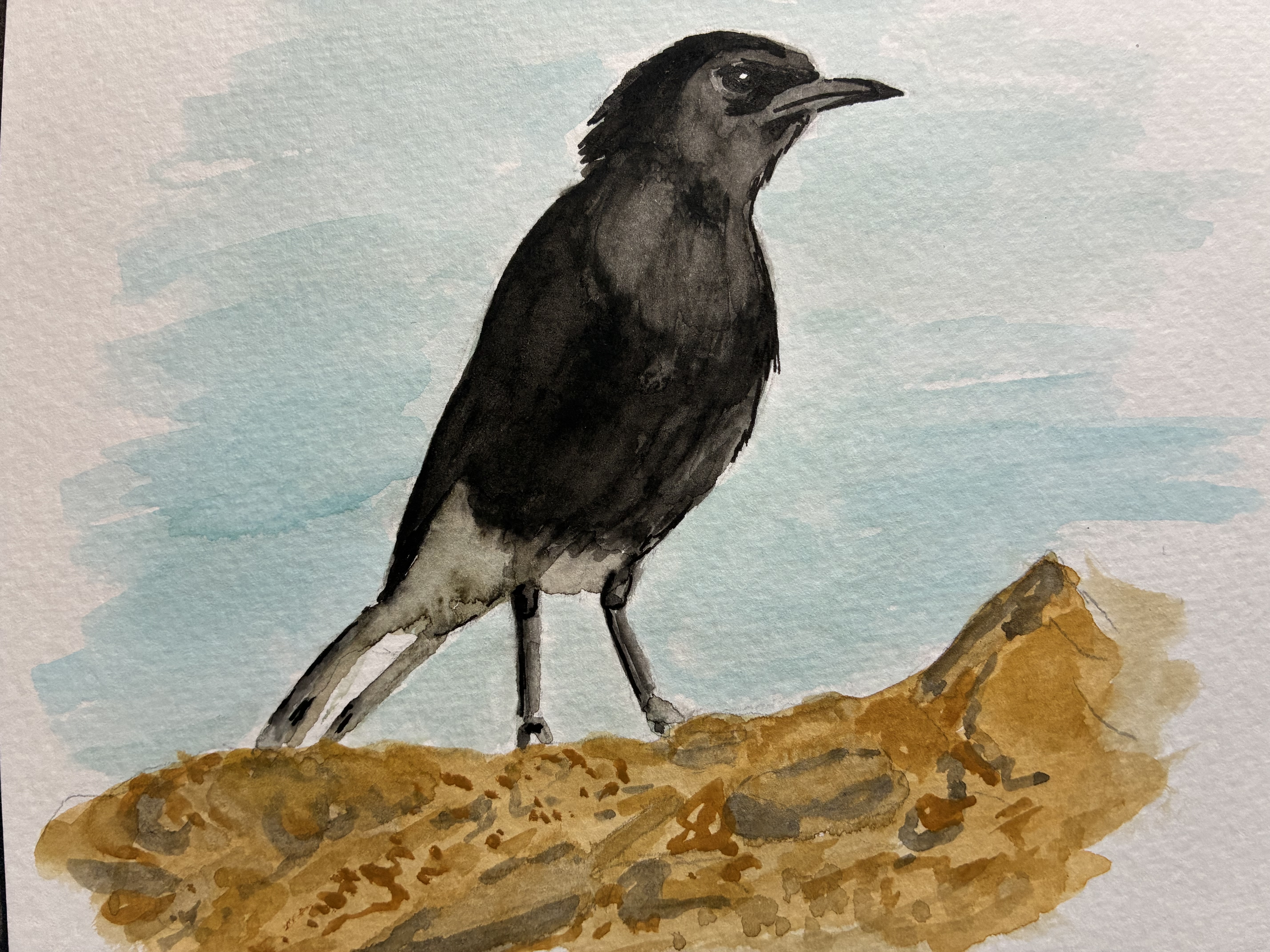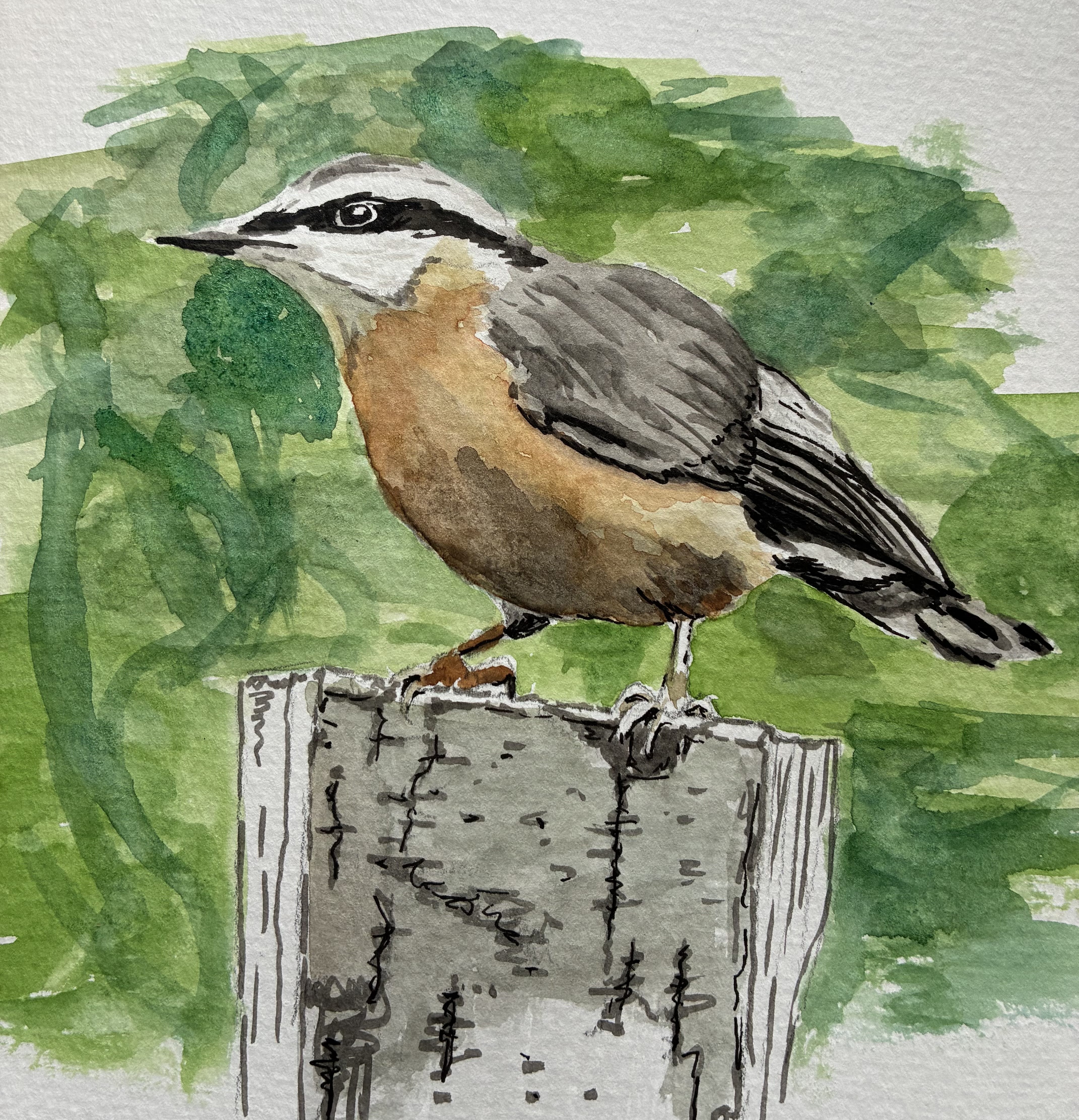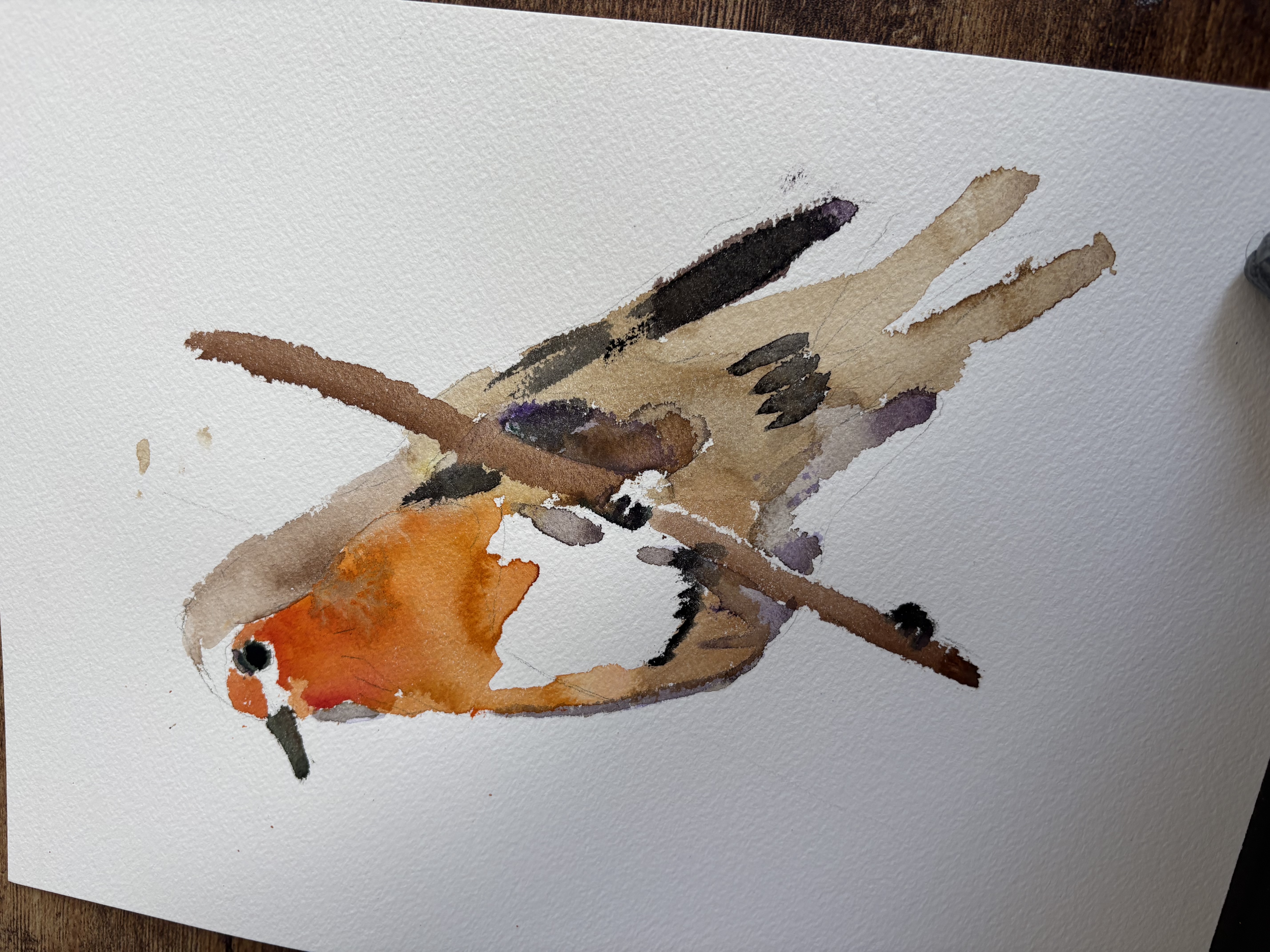 Ton oiseau possède les tons corrects et des traits suffisants pour une représentation fidèle. Comme suggestion, je peux te dire qu'il est bon de prendre quelques secondes entre deux coups de pinceau pour laisser sécher un peu la peinture ; ainsi, tu pourras obtenir des traits plus définis.