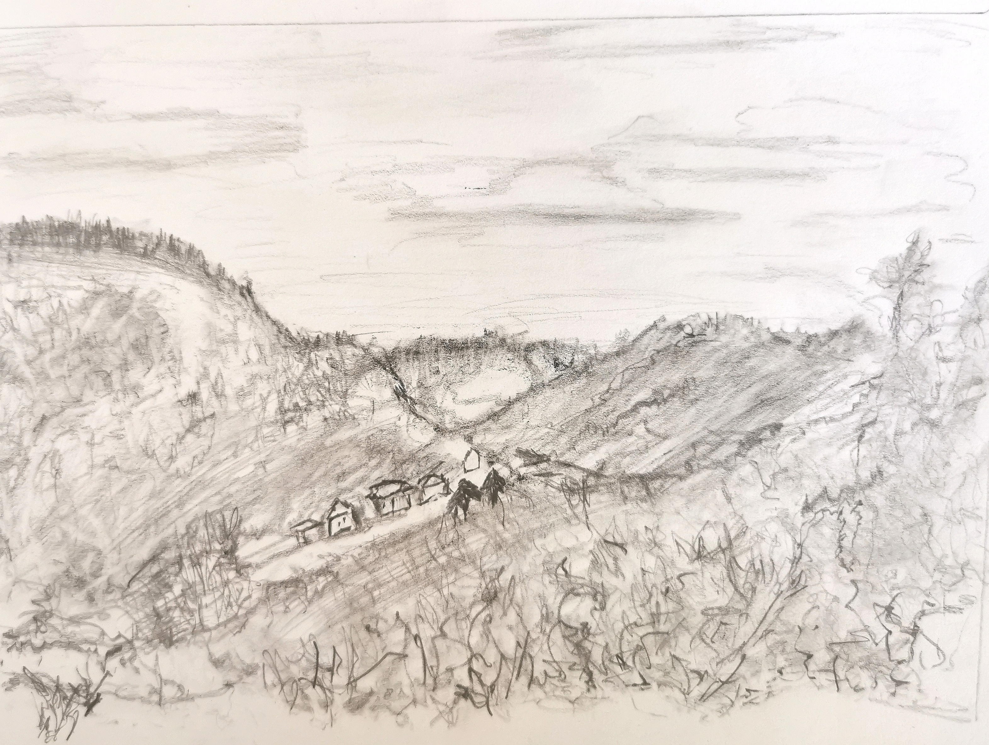 Cette esquisse est meilleure que celle des troncs d'arbres ! tu es plus à l'aise avec les constructions peut-être. Ou alors tu as déjà boen évoluée !