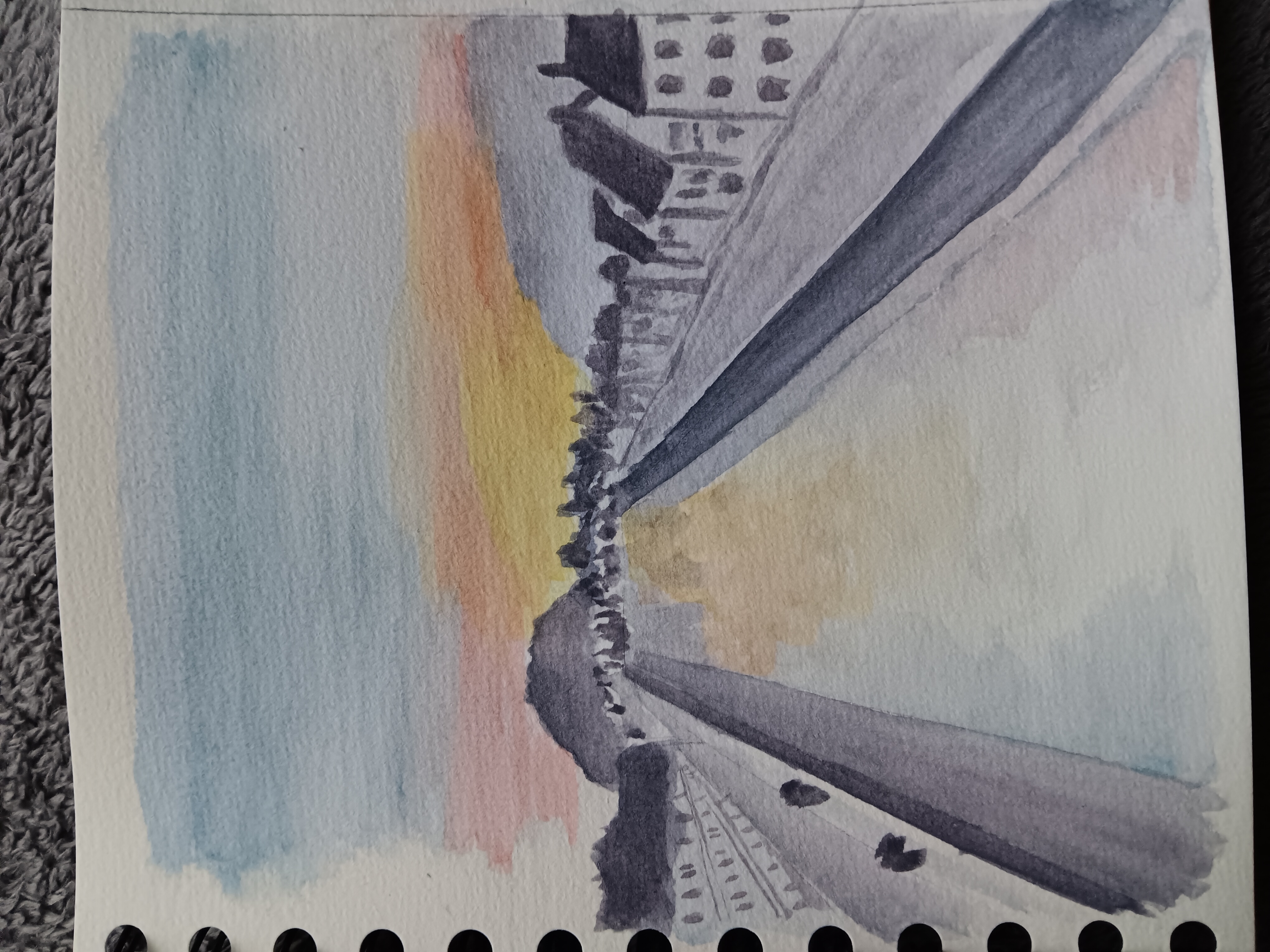 Tu as fait du bon travail ! Je te recommande d'ajouter plus de nuances tant que la couleur est encore humide pour obtenir une fusion plus organique. Laisse ensuite sécher le tout avant d'ajouter les détails, comme les contours, les textures et les fenêtres. Tu es sur la bonne voie, bon courage !