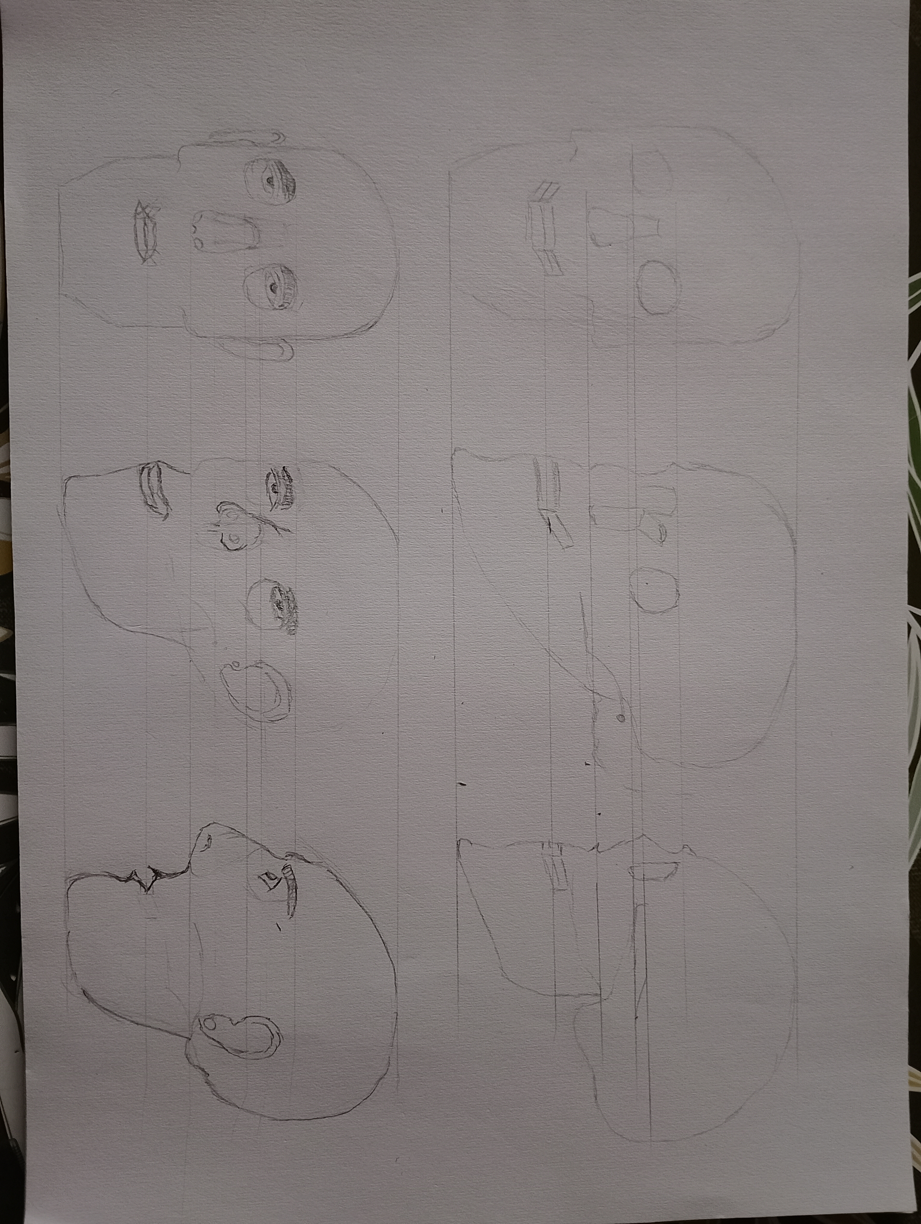 Voici mes essais de visage. Ils ne sont pas parfaits et je compte en refaire d'autres, peut-être en me basant plus sur des références de photos. J'attends vos retours et je retourne dessiner 😊.