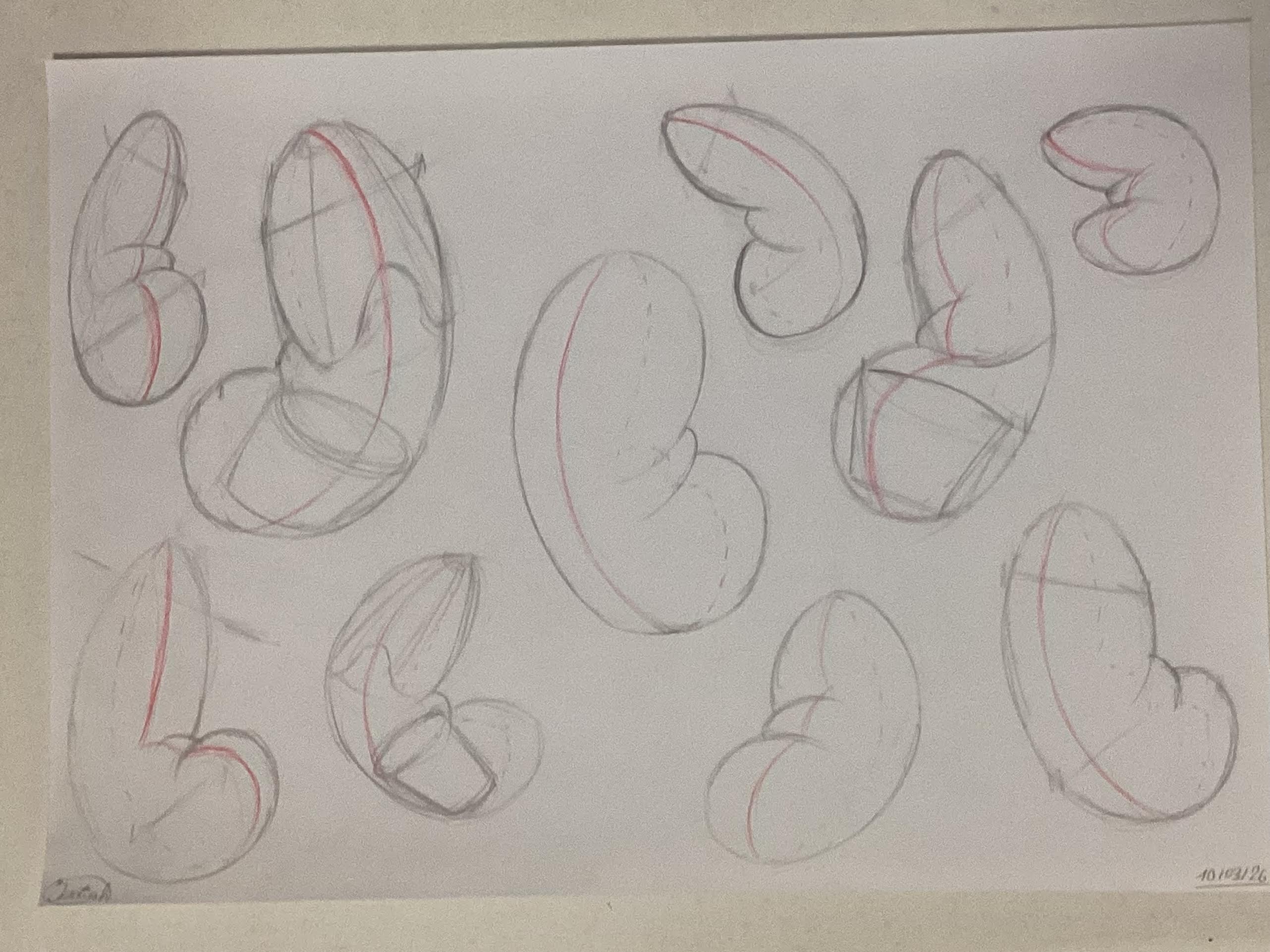 Oui la bean n'est pas toujours évidente. J'ai axé cette formation autour de la pratique et la compréhension des volumes du corps mais c'est vrai qu'il existe une autre école si on peut dire, celle de la silhouette plus que du volume. Tu peux faire cet exercice de la beau en commencant d'avord par une masse globale uniforme avant de penser au trait. A partir de là, place ta centerline et creuse en suivant tes marques de plis : le sternum en haut puis l'ouverture de la cage. Ensuite le bassin est moins évident mais vois le comme une boite à chaussures. On a tous cette boite à chaussures en nous, elle est plus ou moins inclinée, penchée ou encore profonde. SI cet exercice t'es encore difficile, tyu peux aussi essayer de placer directement les volumes simples cage/bassin au lieu de les englober dans une bean. Comme ça tu n'as pas à "creuser" : tes volumes sont déjà faits. Pour te guider utilises les repères osseux du corps.