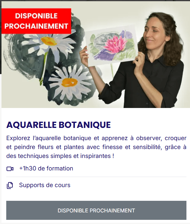 Je sais que tu es très enthousiaste à l'idée de commencer cette formation, mais je te confirme qu'elle n'a pas encore ouvert. Nous restons donc en attente de la grande ouverture. Pour le moment, je te recommande de consulter notre blog : tu y trouveras de nombreux articles sur l'aquarelle qui pourraient t'intéresser.