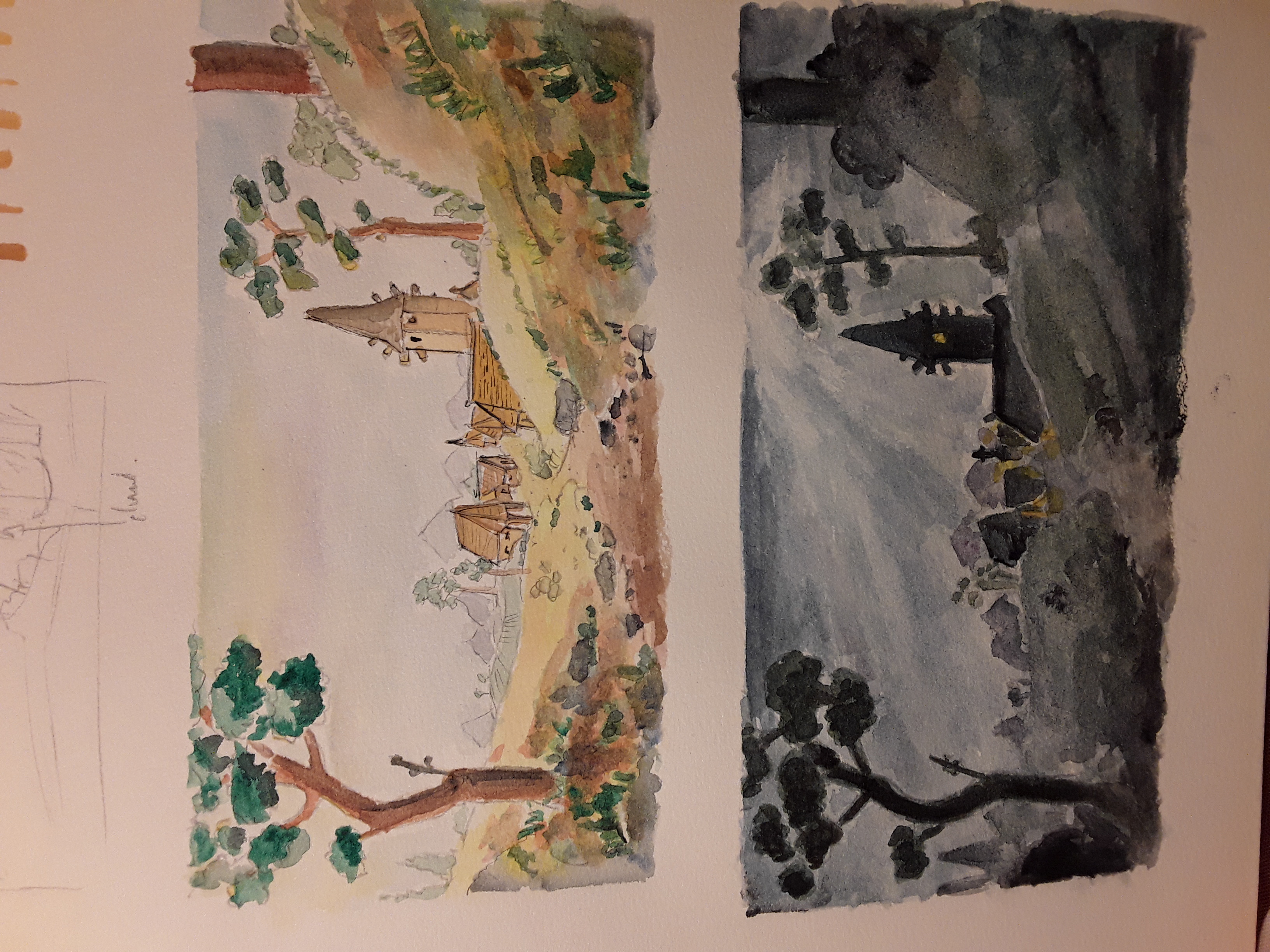 J'ai tenté le jour et la nuit en aquarelle sur le précédent modèle. Je trouve que la nuit est bien plus difficile à représenter