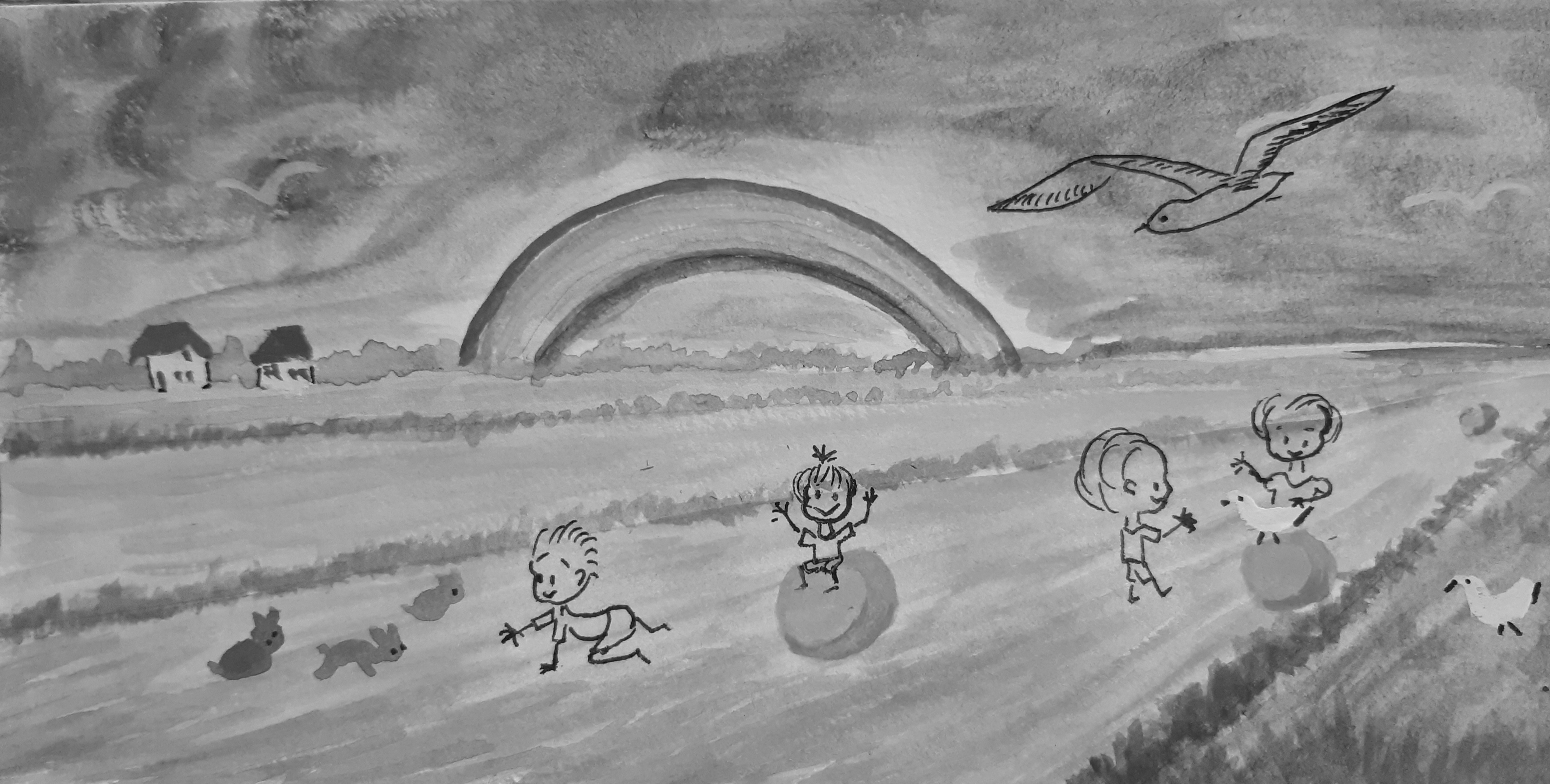 Alors le principal problème qui ressort est que toutes tes nuances ont plus ou moins la même valeur, si tu passe ton dessin en noir et blanc ça se voit bien, ça n'aide pas toujours pour la lisibilité, essaye de foncée un peu plus ton première plan pour apporter un peu de profondeur. Pour ton ciel, même si tu veux représenter un ciel gris je te conseillerai d'ajouter des légères nuances de bleu afin d'avoir un gris teinte qui s'harmonisera encore mieu avec le reste :) Enfin, au niveau du toit des maisons, sachant qu'elles sont vraiment loin du point d'observzyion, n'hesite pas à les faire d'avntage grise afin de bien montrer la profondeur atmosphérique et l'influence du ciel :)