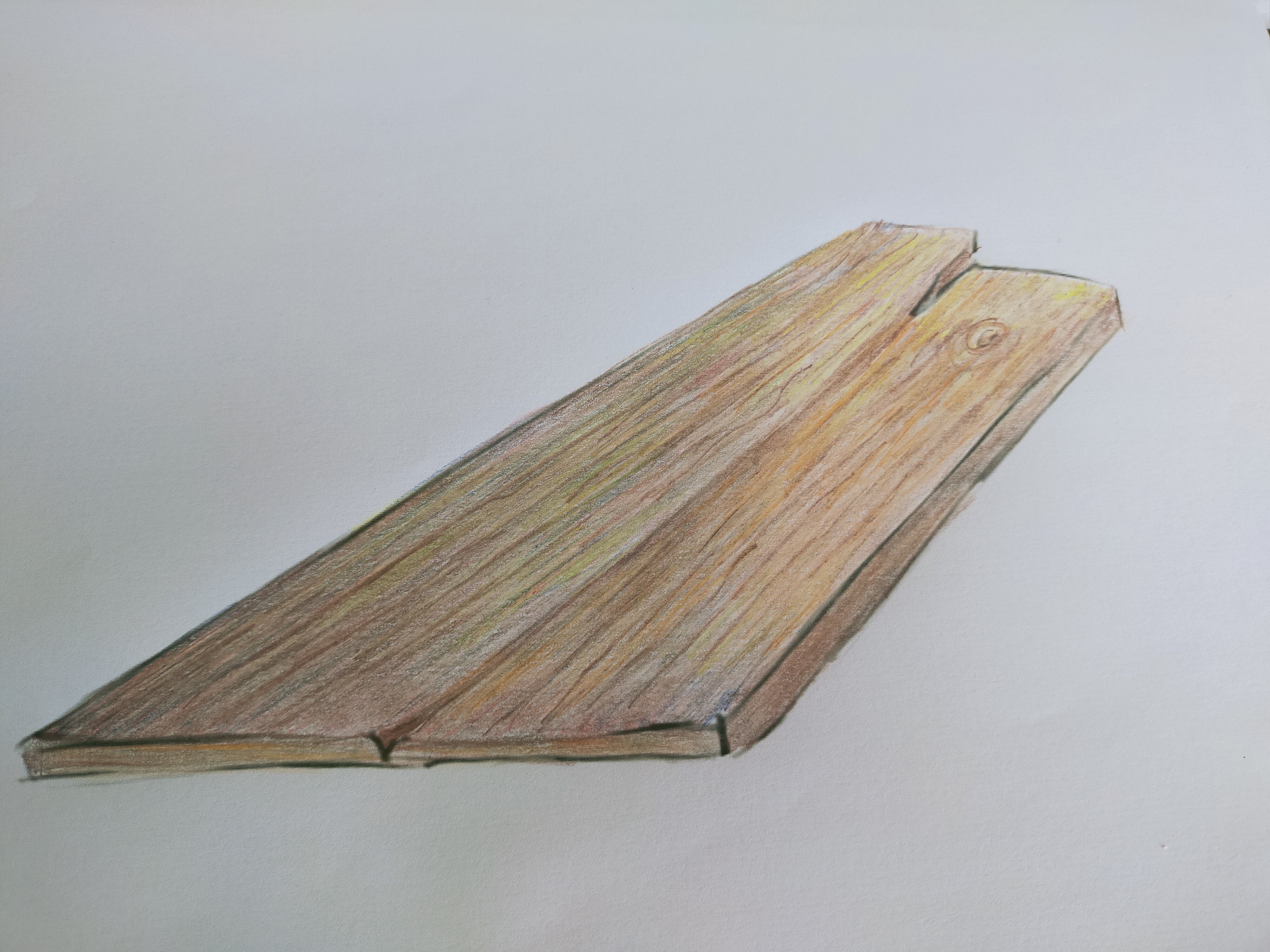 Tu as fait une bonne exploration : les tons marron sont placés de manière agréable, bien que tu puisses intégrer des tons auxiliaires comme le bleu ou le jaune pour donner plus de contraste et de texture. Les crayons de couleur permettent d'intégrer de nombreuses couches qui se mélangent de manière douce et presque imperceptible.